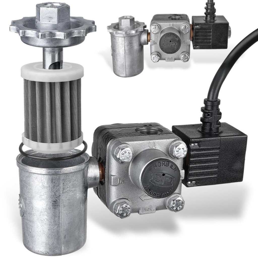 Komplett üzemanyagszivattyú Karcher HDS mosókhoz (24V, bal forgásirány, szűrő, tekercs, mágnesszelep - 6.472-925.0 helyettesítésére)