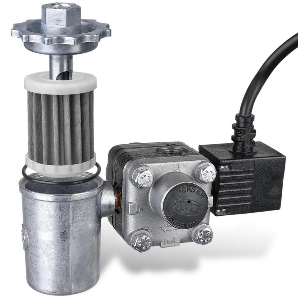 Komplett üzemanyagszivattyú 24V, bal forgásirány, szűrővel és mágnesszeleppel, Karcher HDS kompatibilis (6.472-925.0 helyettesítésére)