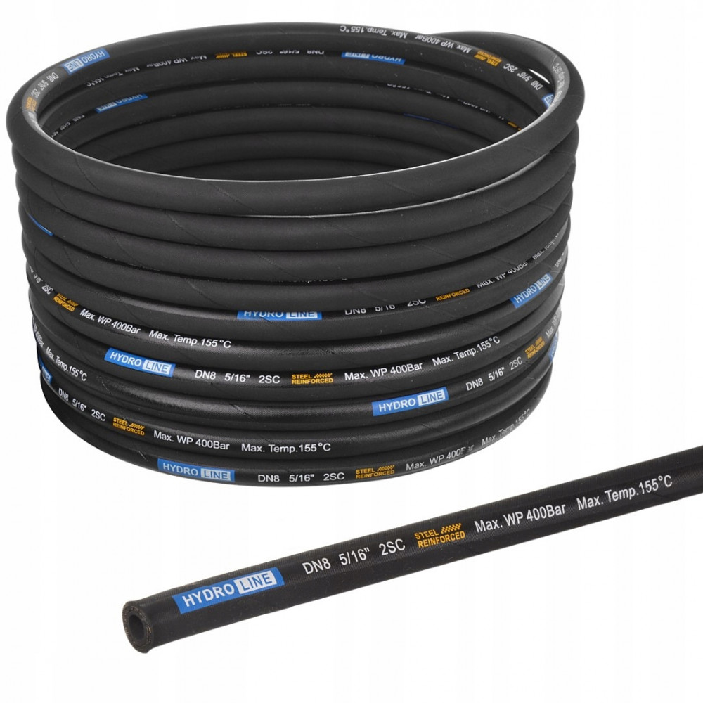 HydroLine magasnyomású hidraulikus tömlő DN8, 2SC, 5/16", 400 bar – Dupla acélfonatos erősítés (méterre vásárolható)