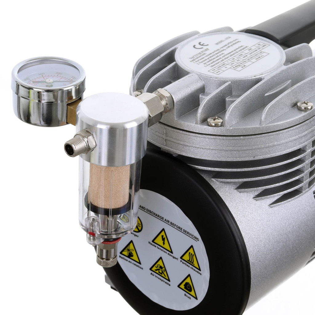 A vákuumszint az órán leolvasható, a beépített szűrő pedig védi a kompresszort a szennyezett levegő szivattyúzásától.