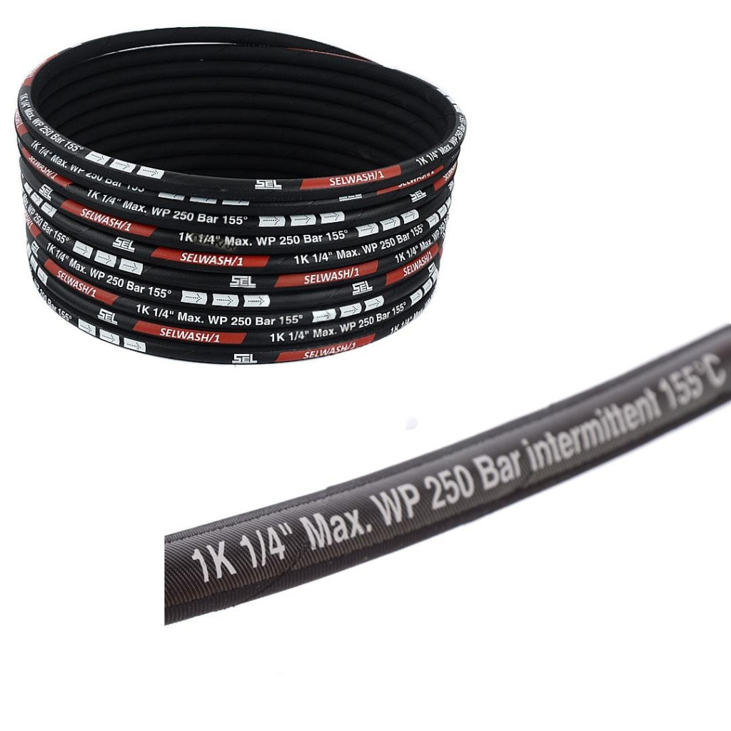 Méretre vágható SelWash DN6 acélfonatú magasnyomású tömlő 250 bar 155°C - Az ár 1 méter tömlőre vonatkozik