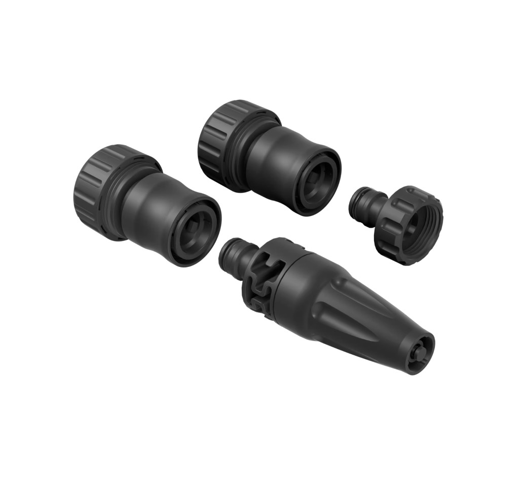 • Tökéletes vízzárás és hidrodinamika: a speciális belső profilozású szorítóanyák garantálják, hogy a tömlők a legnagyobb hálózati víznyomás alatt se csússzanak ki a toldóból.