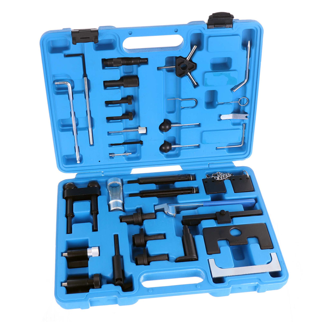VAG vezérlésrögzítő készlet nélkülözhetetlen segédeszköz a professzionális autószervizek és magánszerelők számára a Volkswagen-csoport járműveinek motorfelújítási és karbantartási munkálataihoz.