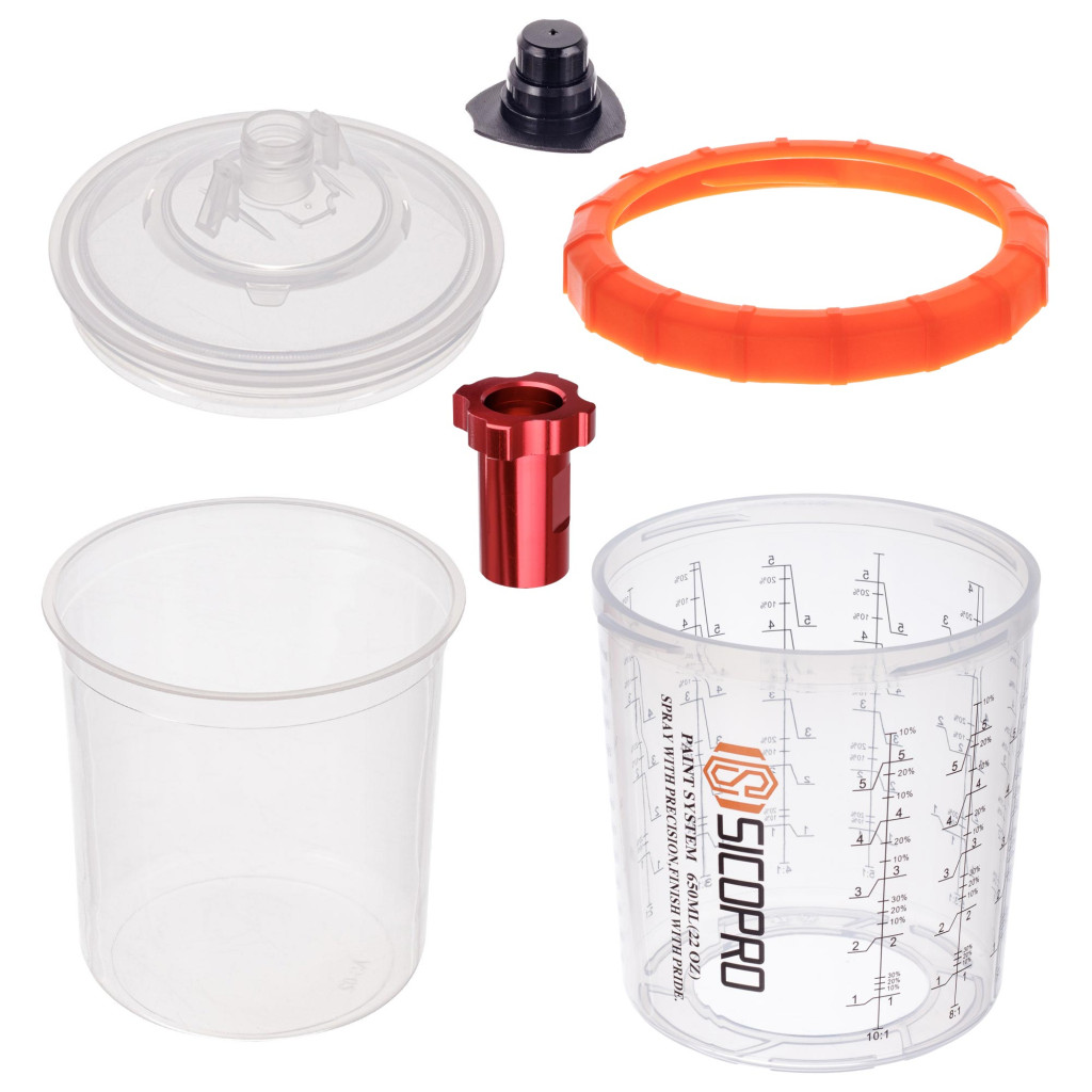 PPS rendszerű festékkeverő szett Felső tartályos festékszóró pisztolyokhoz tervezett egyszer használatos keverő- és adagolórendszer. Lehetővé teszi a lakkok és festékek pontos keverését, felvitelét és ideiglenes tárolását egyetlen edényben.