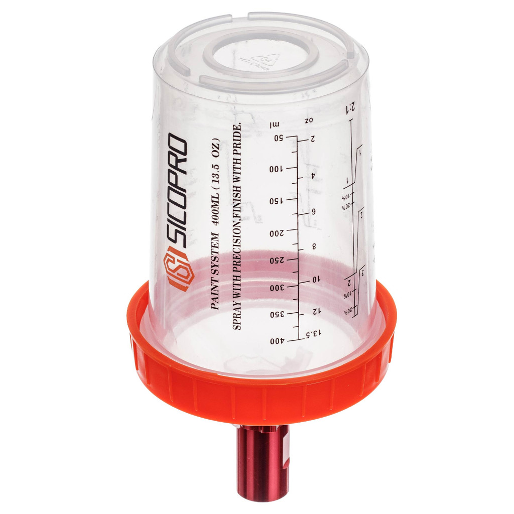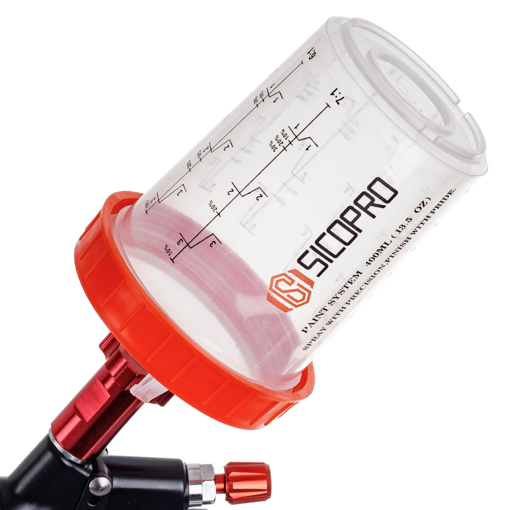 PPS 400ml festékkeverő rendszer Eldobható belső poharakkal és beépített szűrővel ellátott festékkeverő és szóró rendszer ipari és javítófényezési munkákhoz. Használatával a festék keverése és szórása ugyanabban az edényben történik, így az oldószerfelhasználás akár 70%-kal csökkenthető.