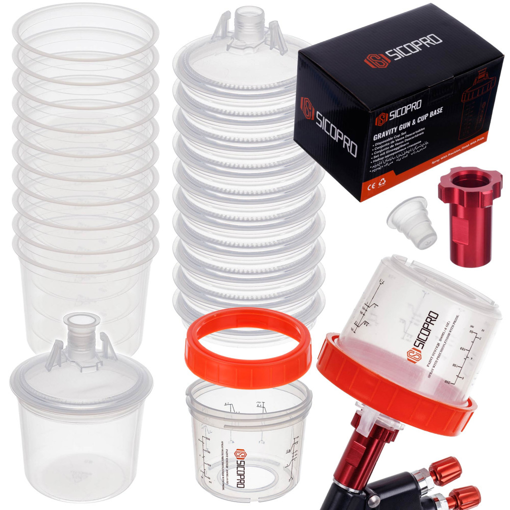 PPS festékkeverő pohár készlet Hatékony és anyagtakarékos rendszer festékek keverésére és szórására, amely precíz munkavégzést és jelentős oldószer-megtakarítást biztosít az előkészítési és tisztítási folyamatok során.