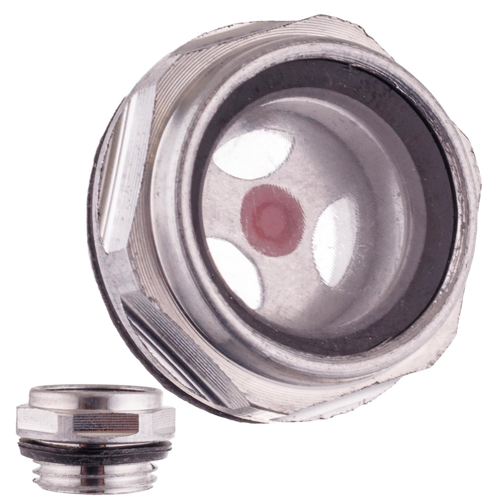 WS-04A ablakos olajszint-ellenőrző és olajbetöltő záródugó kompresszorhoz, szivattyúhoz, 1/2" (kb. 20,5 mm külső átmérőjű) menettel, alumínium testtel, üveg betekintő ablakkal, műanyag elemekkel és gumitömítéssel