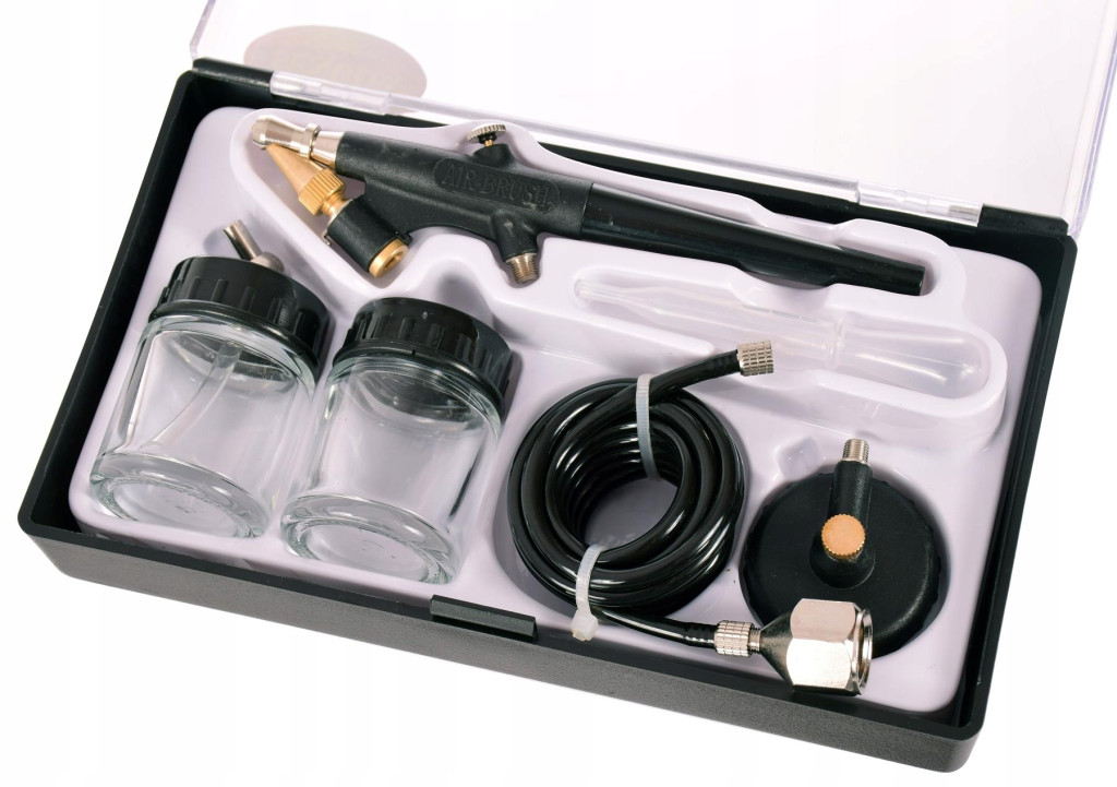 A két alsó festéktartály lehetővé teszi, hogy munka közben gyorsan válts a különböző színek között, míg a praktikus koffer biztonságos tárolást és könnyű szállítást biztosít. A mellékelt M5 – 1/4" redukció és a 1/5 méteres M5 × M5 tömlő segítségével a festékszóró pisztoly könnyen integrálható a meglévő pneumatikus rendszerbe, illetve nagy kompresszoros hálózatba. A szett tartalmaz továbbá nyomáscsökkentőt levegőpalackhoz is, így többféle levegőforrással is használható.