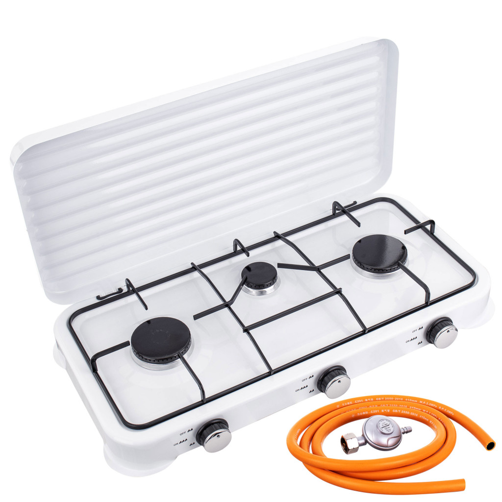 A három különálló gázégőnek köszönhetően egyszerre több edénnyel dolgozhat, így gyorsabban és hatékonyabban készítheti el az ételeket. A robusztus, stabil felépítés és a praktikus, kompakt kialakítás miatt a főző ideális kempingezéshez, kiránduláshoz, kerti konyhához, illetve minden olyan helyre, ahol megbízható gázos főzőfelületre van szükség.