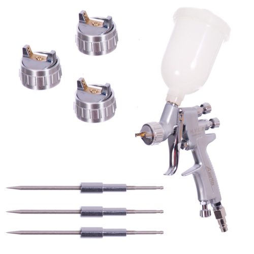 Mini HVLP festékszóró pisztoly Auarita H-921 egy megbízható, pontos és takarékos szóróeszköz, amely a hárompontos szabályozásnak és a cserélhető dűzniknek köszönhetően kiváló választás professzionális fényezési és modellezési feladatokhoz.