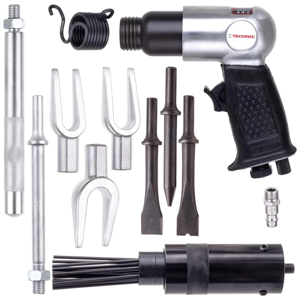 Professzionális pneumatikus kalapács, amelyet kifejezetten függőcsapszegek, kormányösszekötők, gömbfejek és egyéb csapágyazott, szorult kötéselemek gyors és hatékony kiütésére, bontására terveztek. Az univerzális kialakításnak köszönhetően tűs (tűkalapács) fejjel és véső feltéttel egyaránt használható, így ideális autószervizek, gépjárműjavító műhelyek és ipari karbantartó részlegek számára.