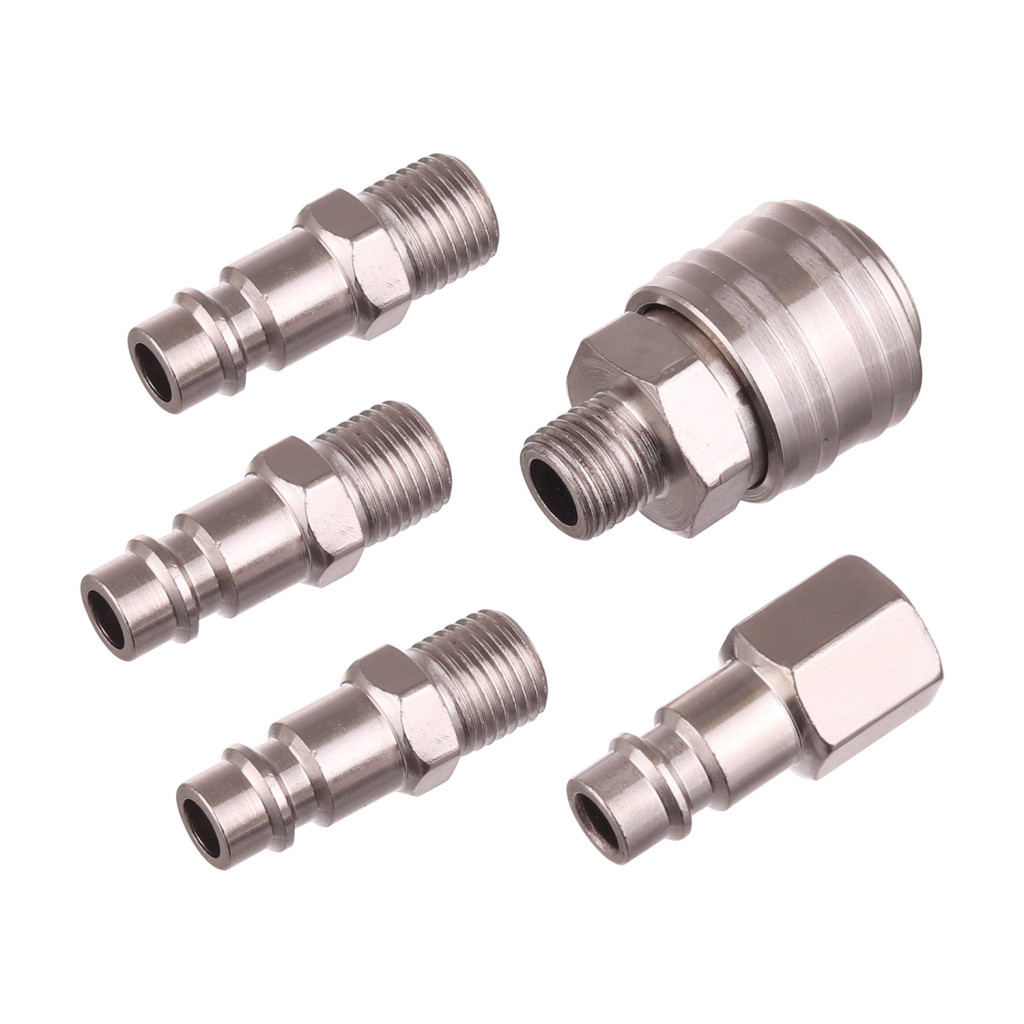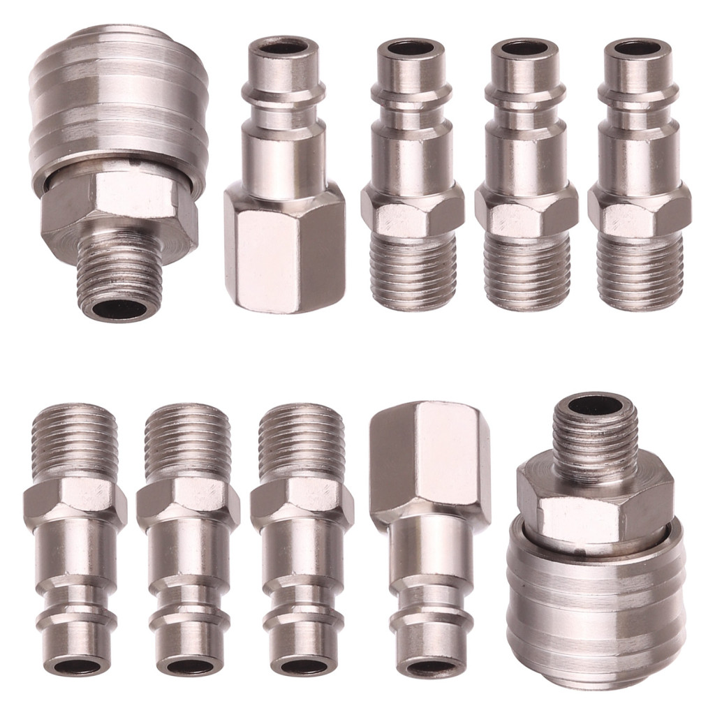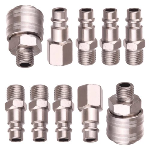 Komplett készlet: tízrészes pneumatikus gyorscsatlakozó és dugó szett; mindent tartalmaz a gyakori csatlakoztatási feladatokhoz