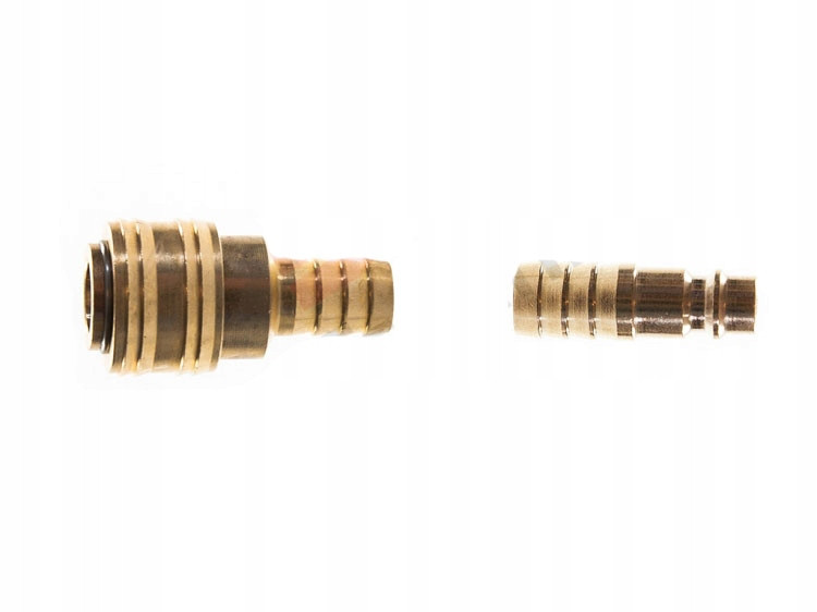 Gyorscsatlakozó készlet 12 mm-es pneumatikus tömlőkhöz, európai TYP 26 rendszerrel. A szett egy női gyorscsatlakozóból és egy férfi dugóból áll, amelyek masszív, tartós sárgarézből készülnek a megbízható tömítés és hosszú élettartam érdekében. Ideális kompresszorokhoz, tömlők meghosszabbításához vagy végződtetéséhez, műhelyekben, ipari és háztartási felhasználásra egyaránt.