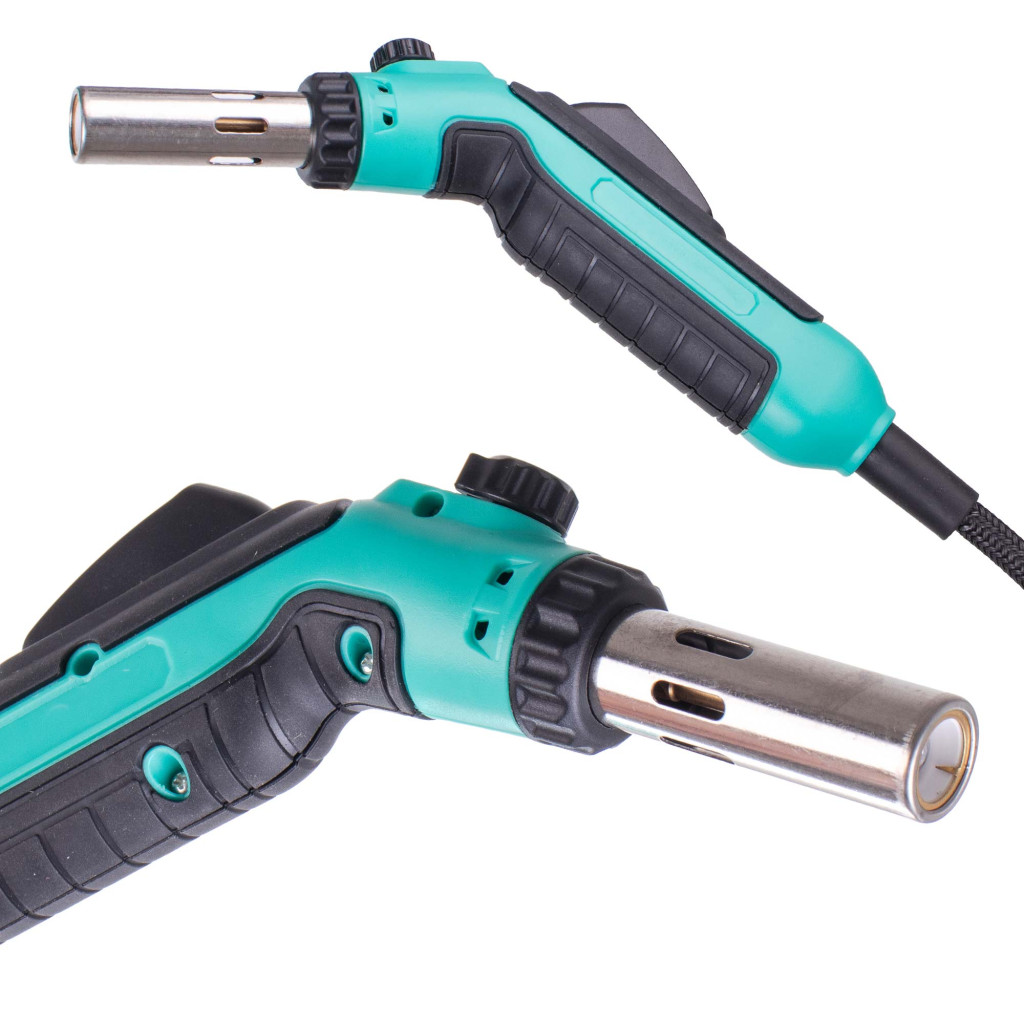 - KÉNYELMES HASZNÁLAT: Pisztolymarkolat egykezes munkához; integrált 1 m gáztömlő a szabad mozgásért és kényelmes munkavégzésért