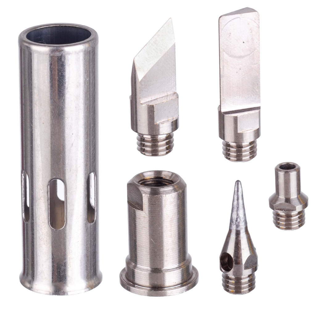 • 4 db precíziós cserefej – forrasztáshoz, vágáshoz, formázáshoz és fókuszált lánghoz.