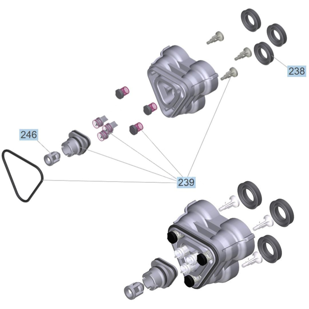 • Komplett egység: tartalmazza a műanyag házat, a nagynyomású szelepeket és a formázott tömítéseket.
