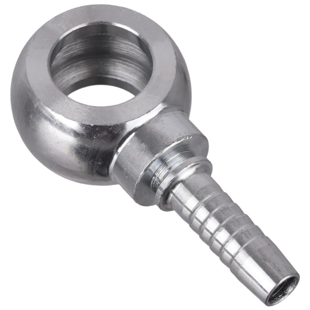 DN10 (10 mm belső átmérőjű) tömlőkhöz tervezett szemescsöves végződés, amely lehetővé teszi 1/2"-os furatos csavar alkalmazását. A forgó, szöges kialakítású csatlakozó megkönnyíti a tömlő elhelyezését és szerelését szűk vagy nehezen hozzáférhető helyeken, miközben megbízható, tömített kapcsolatot biztosít.