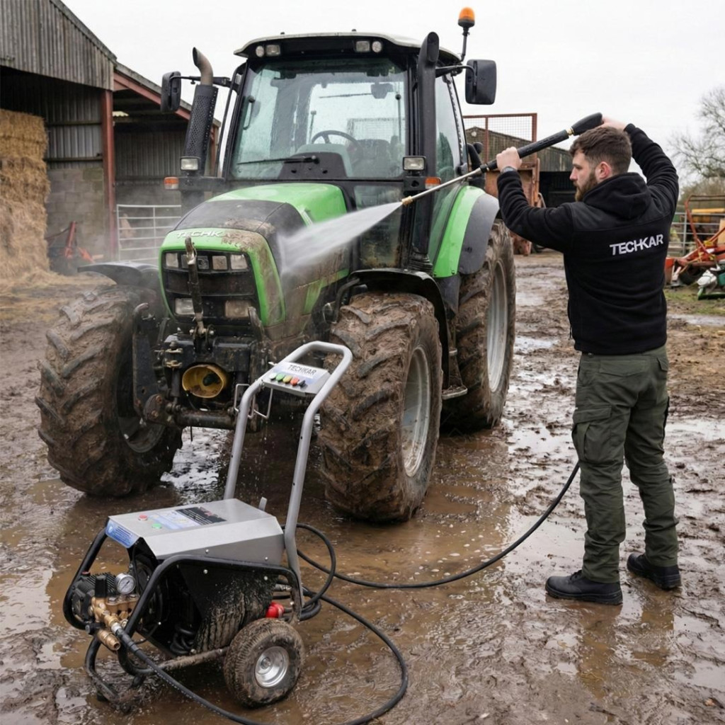 Ez a berendezés a kompromisszumok nélküli tisztítás eszköze. A legtöbb ipari mosó megáll 200 barnál, de ez a modell 250 bar üzemi nyomást produkál, amihez hatalmas, 15,5 liter/perces (930 l/óra) öblítővíz-mennyiség társul. Ez a párosítás nemcsak fellazítja a rászáradt betont, sarat vagy bitument, hanem azonnal el is távolítja a felületről.