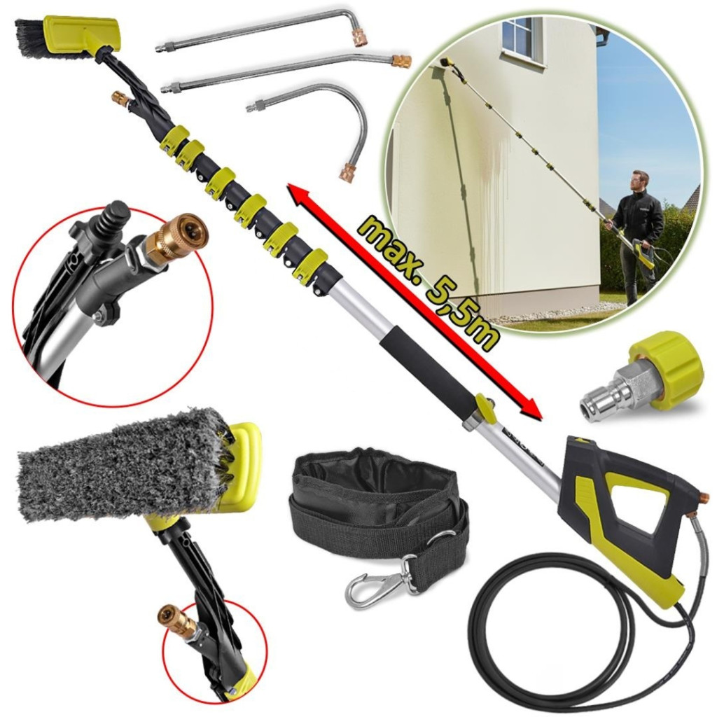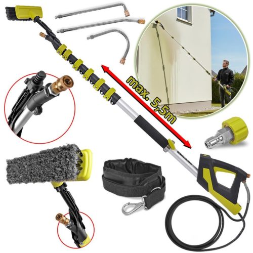 Cleanercenter 5,5 m teleszkópos lándzsa szett mosókefével hevederrel és fúvóka készlettel (max. 290 bar)