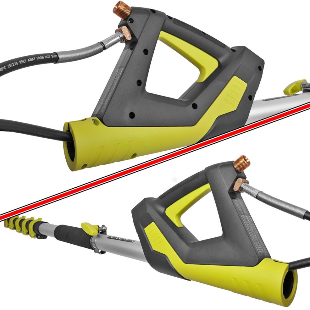 A Cleanercenter teleszkópos lándzsája könnyű, de rendkívül strapabíró alumínium szegmensekből épül fel, amelyeket masszív szorítógyűrűk tartanak a helyükön. A belső csőrendszer kialakítása lehetővé teszi, hogy az eszköz akár 290 bar nyomást és 60 °C-os meleg vizet is elviseljen, így a legkomolyabb ipari mosókkal (Kärcher HD/HDS, Kränzle, Nilfisk) is biztonságosan használható. A pisztoly markolata ergonomikus kialakítású, a csomagban lévő hordozóöv pedig megakadályozza az izmok túlterhelését a hosszú munkanapok során.