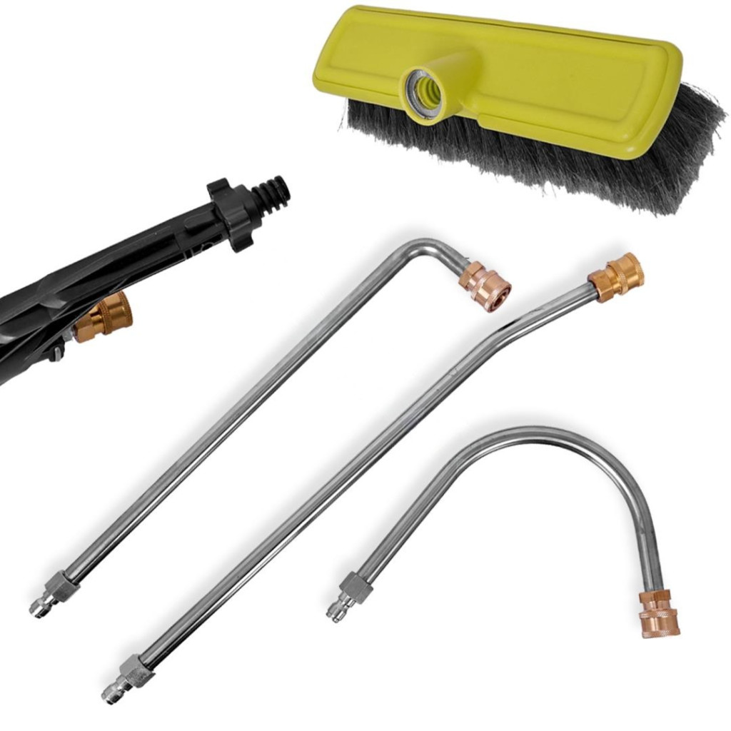 • Sokoldalú tartozékok a dobozban: a szett egy menetes rögzítésű mosókefét és 3 darab extra szögadaptert (15°-os, 90°-os és egy hajlított ereszcsatorna-tisztító szárat) tartalmaz, amelyekkel minden zegzugot könnyedén elérhet.