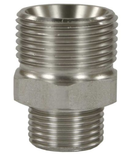 Ez a rozsdamentes acél szűkítő elem M22x1,5mm külső menetről 3/8" külső menetre biztosít átmenetet, kifejezetten magasnyomású rendszerekhez tervezve. Az adapter stabil és szivárgásmentes kapcsolatot garantál, optimalizálva a kompatibilitást és a teljesítményt a különböző magasnyomású berendezések között. Ideális kiegészítő Karcher rendszerekhez, pisztolyokhoz és habosítókhoz, ahol a megbízhatóság kulcsfontosságú.
