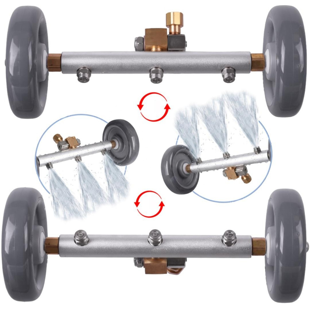 W3 professzionális kerekes szórókeret (kocsi) – térkőtisztító és alvázmosó egyben. Ez a három fúvókával szerelt magasnyomású tartozék ideális választás térkő, járda, beton és aszfalt felületek gyors, csíkmentes tisztításához, valamint gépjárművek alvázának alapos mosásához. Stabil kerekes alvázának köszönhetően könnyen irányítható, rozsdamentes szerkezete pedig 275 bar nyomásig és 90°C hőmérsékletig terhelhető. Pörgős kiszolgálással.
