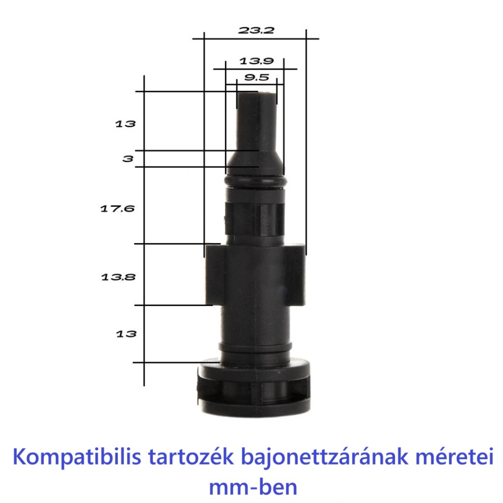 Kimenet (Lándzsa csatlakozása)Lavor Bajonettzár (elfordítós rögzítés)