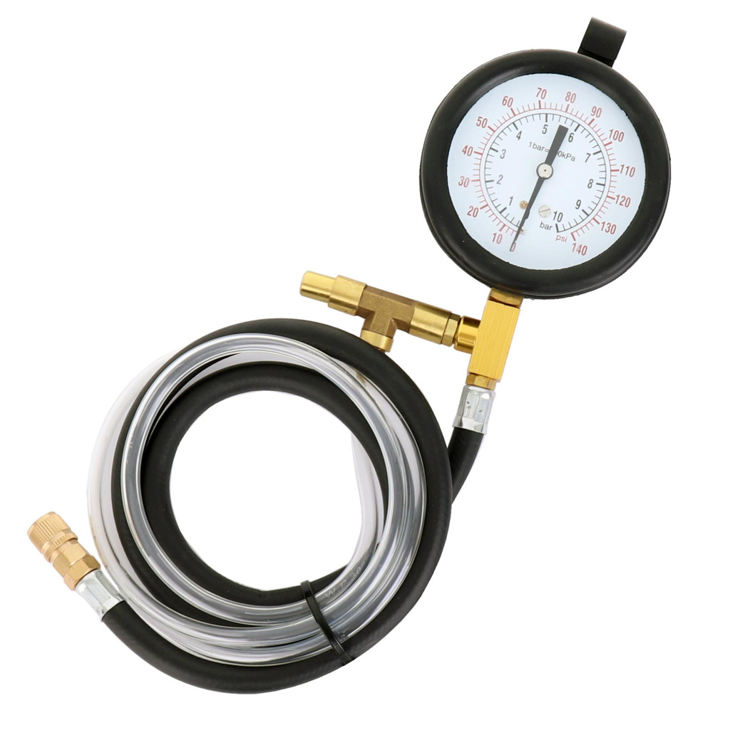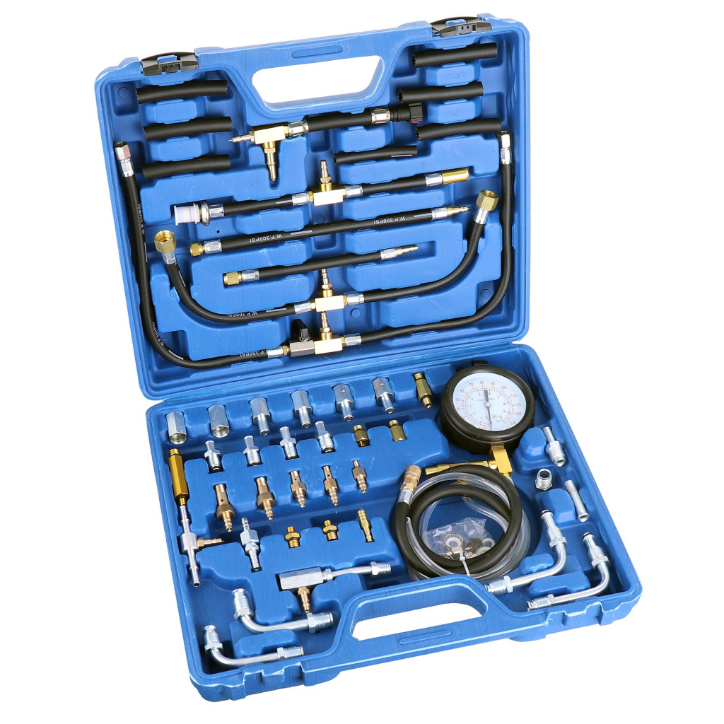 Ez a készlet benzinbefecskendező rendszerek üzemanyagnyomásának mérésére szolgál. A teszter a legtöbb olyan befecskendező rendszerhez alkalmas, amelyeket benzinnyomás mérésére terveztek.
