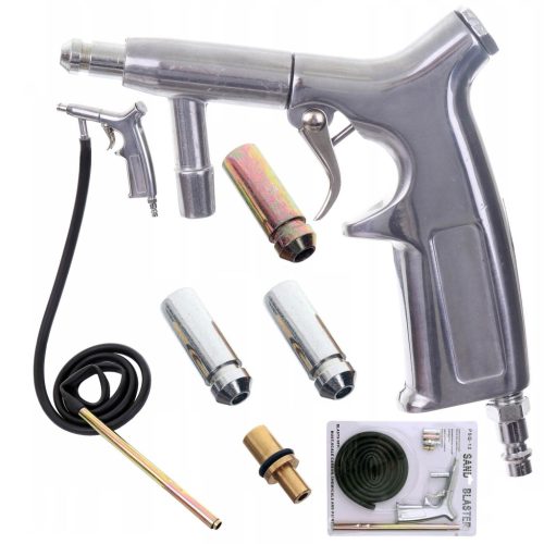 Pneumatikus homokszóró pisztoly, homokfúvó, 4 fúvókával, tömlővel (homok felszívó tömlővel)