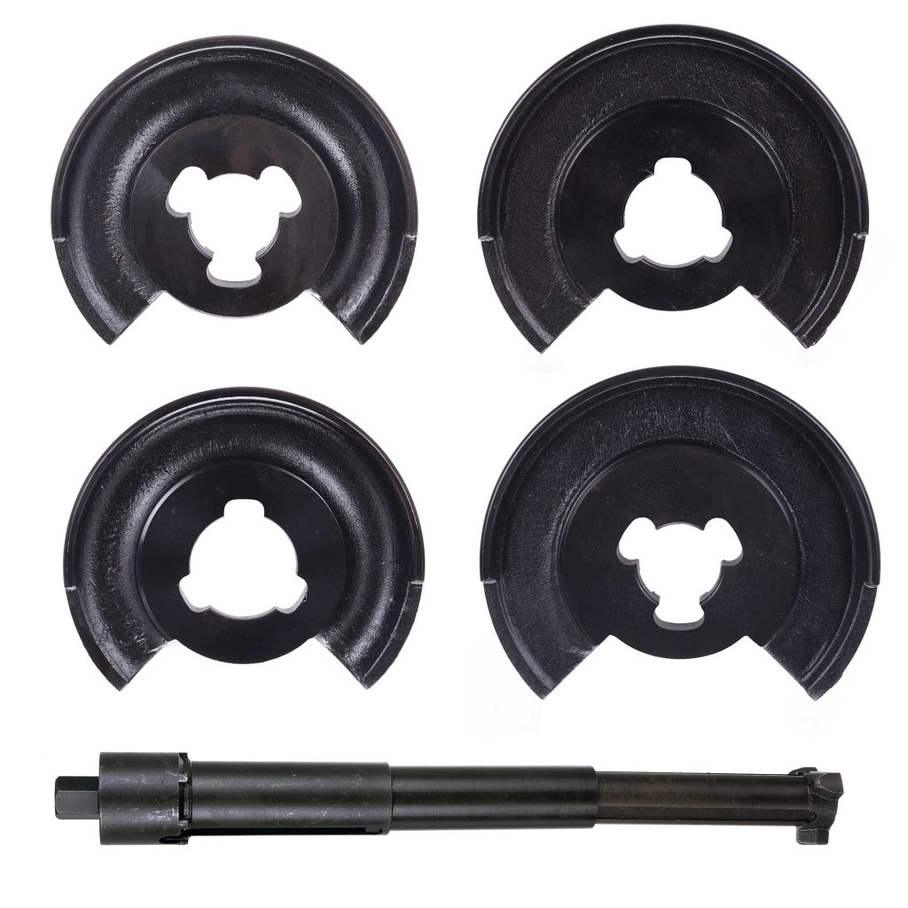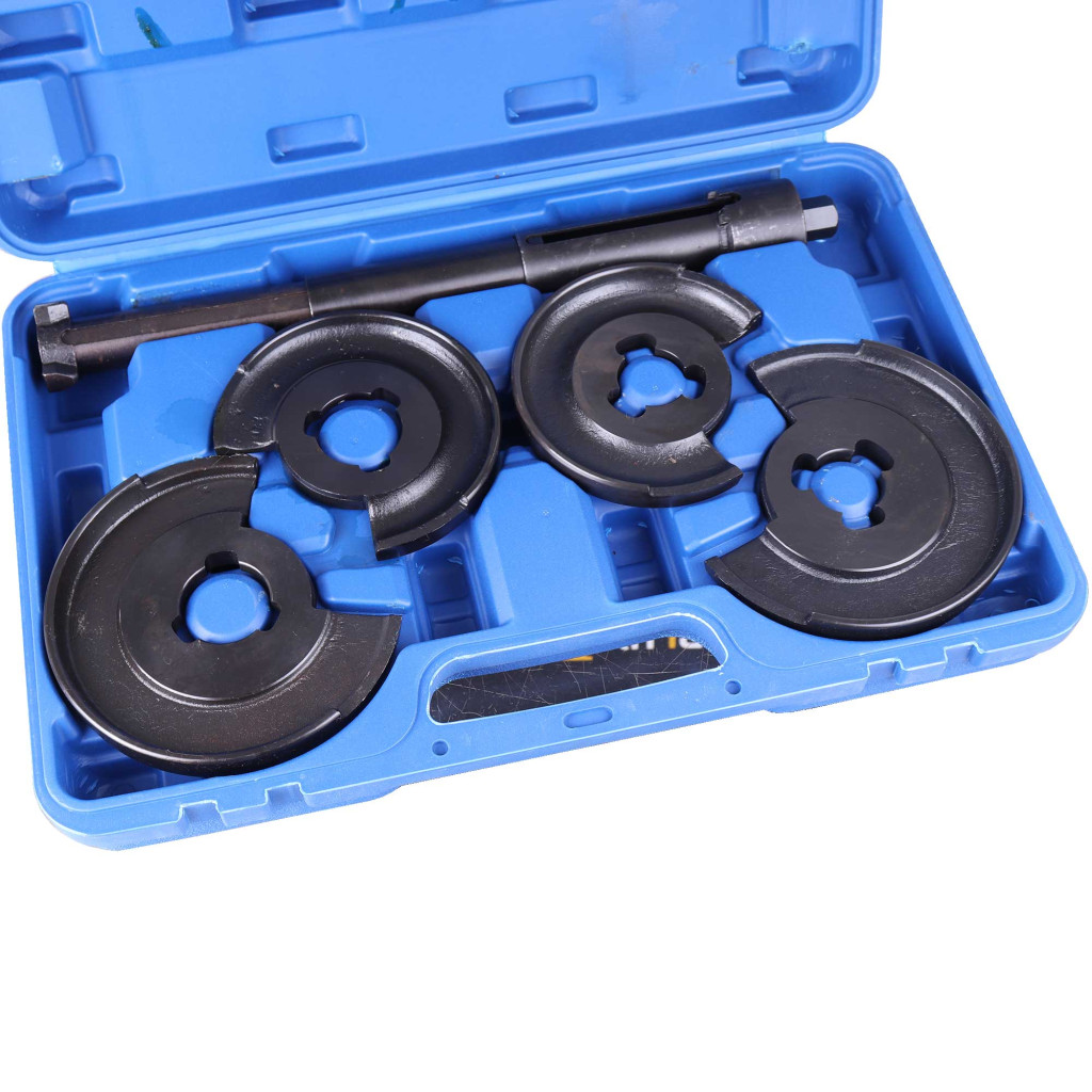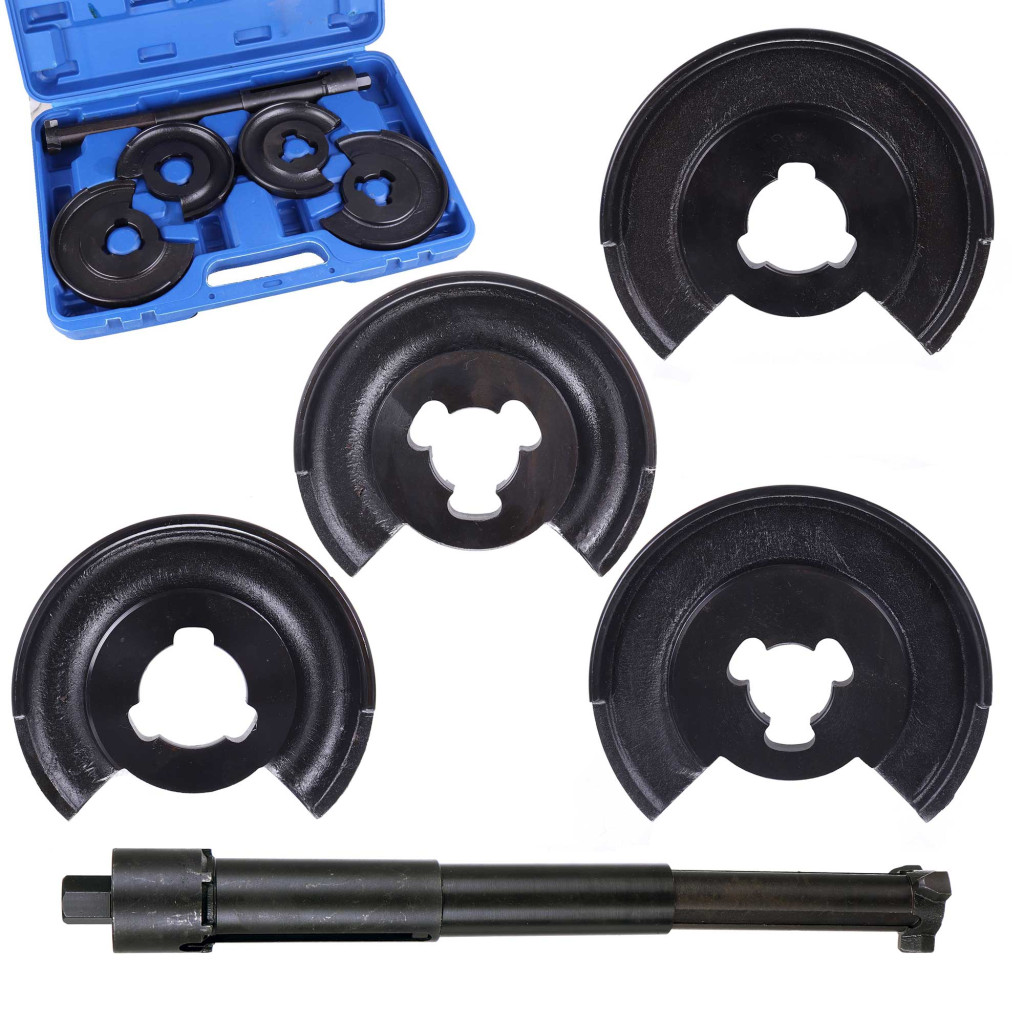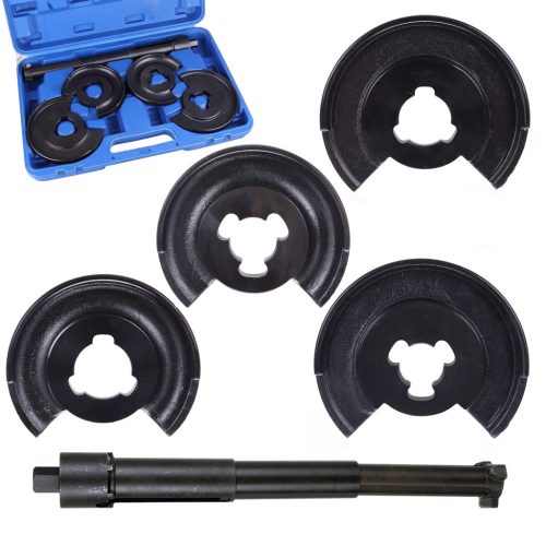 Eszköz a lengőkarok (első és hátsó) közötti tekercsrugó eltávolítására és beállítására . Az eszköz két pár cserélhető tárcsával van felszerelve, 3 horgos biztonsági rendszerrel.