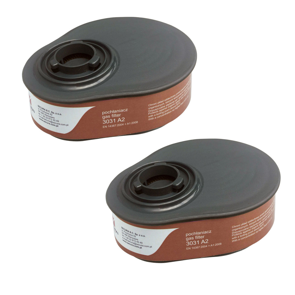 2x SECURA Szűrőbetét 3031 A2 Maszkhoz és Félmaszkhoz Organikus Gázok és Gőzök Ellen