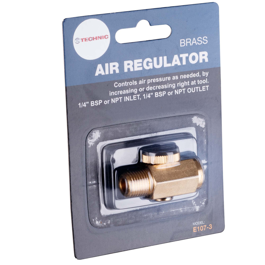 A szabályozó lehetővé teszi a légáramlás beállítását. Jól működik sebességszabályozóként pneumatikus csiszolókhoz. 1/4"-os menethosszabbítóként is használható. Sárgarézből készült. Előnye, hogy gyorsan változtatható az áramlási átmérő.