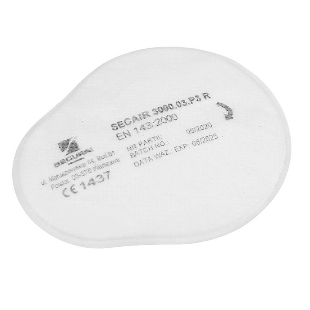 A SECAIR 3000.03 P3 R szűrők kétszűrős félálarccal vagy maszkkal kombinálva védik a légzőrendszert a szilárd részecskék (por, gőzök) és folyékony részecskék (köd) aeroszoljai ellen, mindaddig, amíg a diszpergált fázis koncentrációja nem éri el vagy meghaladja a 30-szoros NDS-t (legmagasabb megengedett koncentráció).