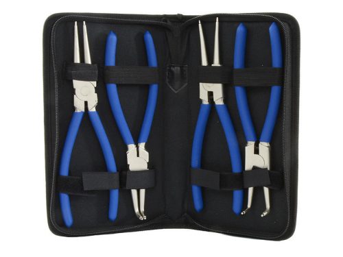 A biztosítógyűrűk (köznyelvben: zégergyűrűk) a gépészet alapvető elemei. Feladatuk az alkatrészek, például csapágyak tengelyirányú elmozdulásának megakadályozása. Két fő típusuk van, és mindkettőhöz más mozgású fogó szükséges. A TC Technic JC1012-225 készlete egyetlen praktikus, cipzáras tokban egyesíti a 4 legfontosabb eszközt, amivel a külső és a belső, a könnyen elérhető és a süllyesztett gyűrűk is könnyedén kezelhetők.