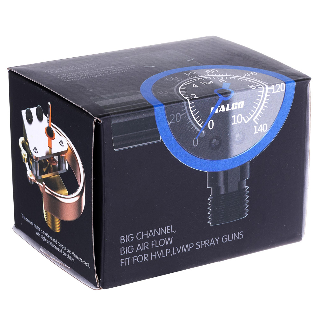 Fedezd fel az ITALCO MODEL ONE GOLD nyomáscsökkentőt, mely ideális választás minden festékszóró pisztollyal való használathoz. Az eredeti ITALCO minőség és precizitás garantálja a kiváló festési eredményeket, miközben a membrános típusú nyomáscsökkentő pontosan szabályozza a levegő nyomását. Kis mérete kényelmes kezelhetőséget biztosít, közvetlenül a festékszóró pisztolyra csatlakoztatva. A jól olvasható mérőóra BAR és PSI skálán is mutatja az értékeket.