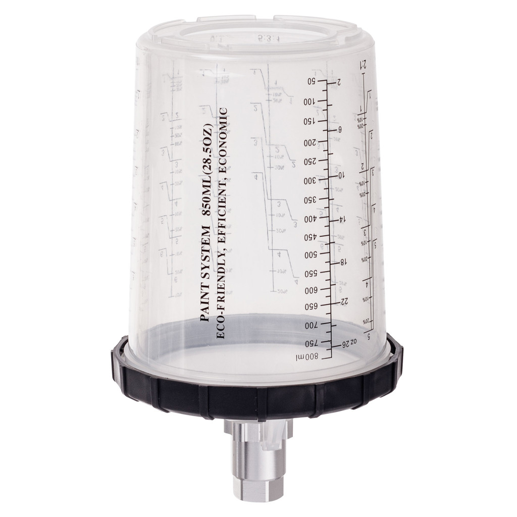 Praktikus készlet festékkeveréshez és -felvitelhez, tartalmaz egy beosztásos külső poharat és eldobható puha poharakat szűrős fedéllel . A legtöbb festékszóró pisztollyal kompatibilis.