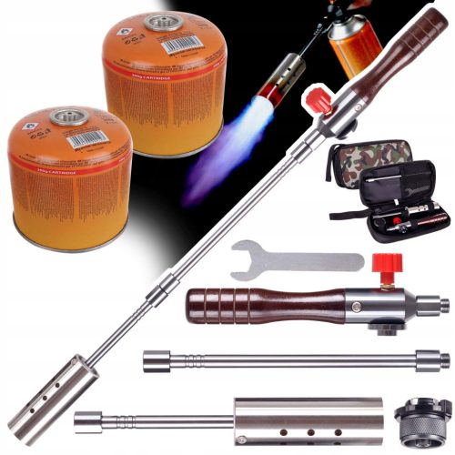 Három részből áll - egy szelepes fogantyúból, egy hosszabbítóból és egy fúvókából. Dolgozhat hosszabbítóval - ekkor az égő teljes hossza 57 cm - vagy hosszabbító nélkül - akkor a hossza 37,5 cm .
