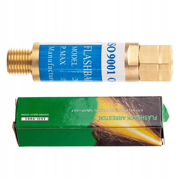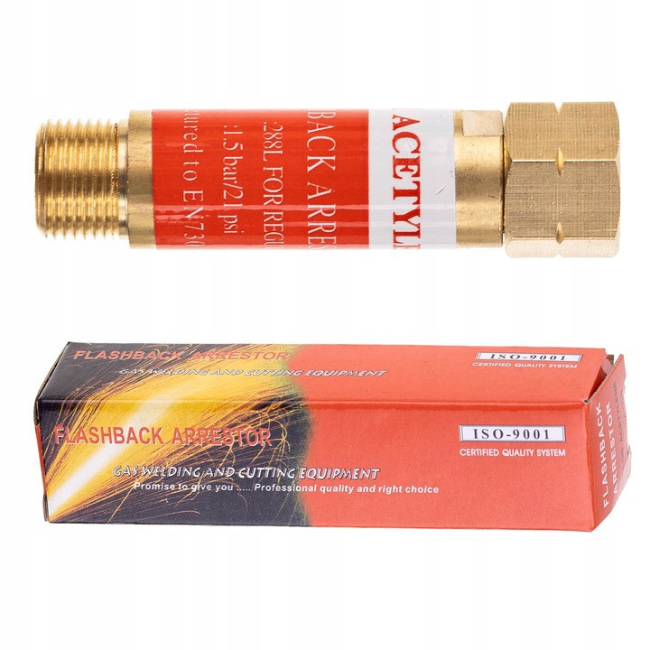 A biztosíték megakadályozza, hogy a láng elérje az oxigénpalackot. 1/4"-os menettel van felszerelve a szűkítőre történő csavarozáshoz.