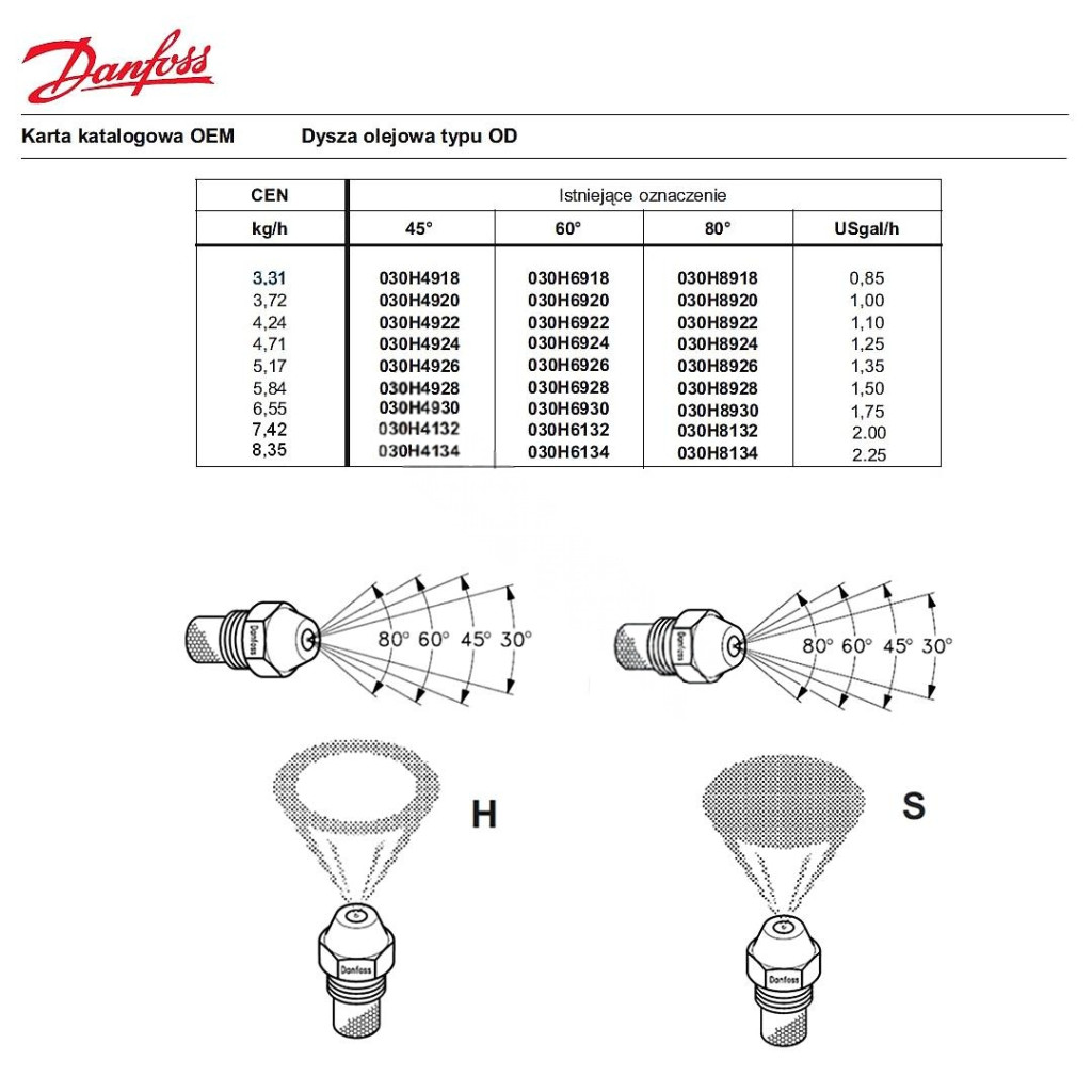 Eredeti Danfoss gyártmányú gázolaj-befecskendező fúvóka. A középkategóriás Karcher HDS mosókban használt 1.10-es fúvóka "H" (Hollow - Üreges) változata. Kifejezetten olyan speciális égőfejekhez, ahol a tökéletes keveredéshez üreges porlasztási kúp szükséges. 1.10 USgal/h teljesítmény, 60° szórási szög, H (Üreges kúp) karakterisztika és 75 µm szinterelt bronz szűrő jellemzi. Gyors kiszolgálással.