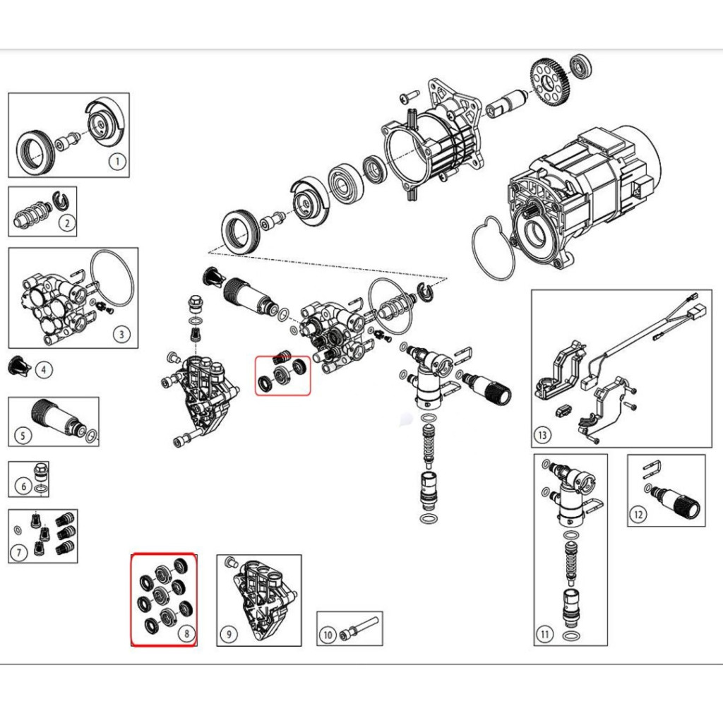 Tömítéskészlet Nilfisk C135 C130 C125 C120 új típusú magasnyomású mosókhoz (128501508) Fi 10
