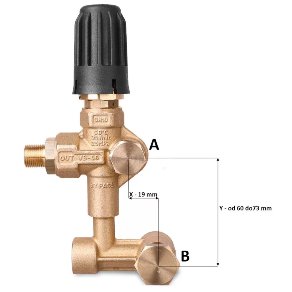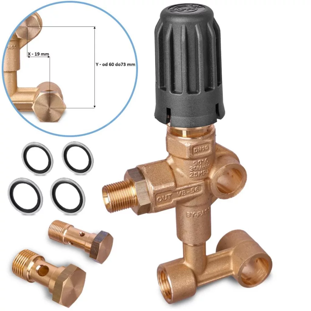 PA VB56 By-Pass szelep (nyomásszabályozó) Interpump, Udor és Comet szivattyúkhoz – Prémium minőségű, olasz gyártmányú (PA) szabályozó szelep ipari magasnyomású mosókhoz. Kettős funkciót lát el: védi a rendszert a túlnyomástól (biztonsági szelep), és lehetővé teszi a precíz nyomásállítást. 250 bar maximális nyomásig terhelhető, közvetlenül a hengerfejre szerelhető kivitel. Pörgős kiszolgálással.