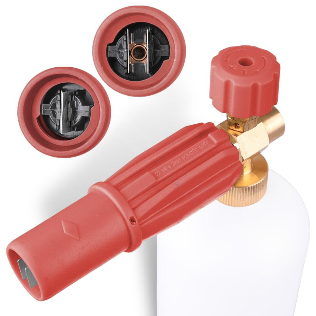 A habosító bajonettzáras csatlakozóval rendelkezik, amelyet a háztartási magasnyomású mosókban használnak. A lándzsa ideális mindenféle folyékony tisztítószerhez. A habosító űrtartalma körülbelül 1 liter. Az átlátszó vegyszertartály lehetővé teszi a habosítószer mennyiségének szabályozását. A habosító állítható vízsugár szöggel és vegyszeradagolási mennyiséggel rendelkezik. A sárgaréz test hosszú élettartamú és problémamentes működést garantál. A nagynyomású készülékekben található hagyományos vegyszeradagolókkal ellentétben a TECHAR habosító széleskörű alkalmazási rugalmasságot kínál minden vegyszerhez (még az agresszívekhez is). Közvetlenül a vízkimenetre van felszerelve, így az agresszív vegyszerek megkerülik a mosó belső körét, csökkentve a fej károsodásának kockázatát.
