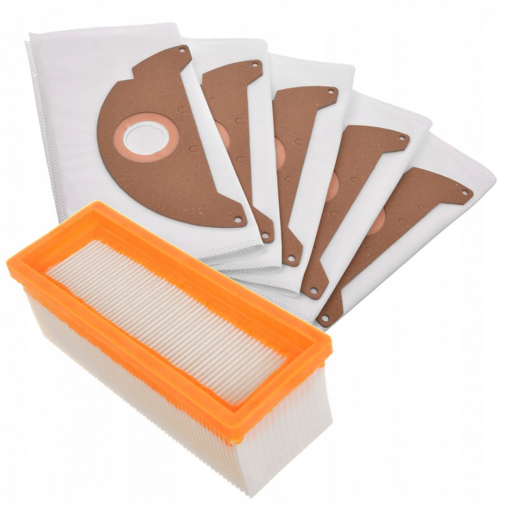 Légszűrő + 5 porzsák Karcher A 2501 SE 3001 SE 5.100 porszívókhoz (6.904-322.0, 6.414-498.0 cikkszámok kiváltására)