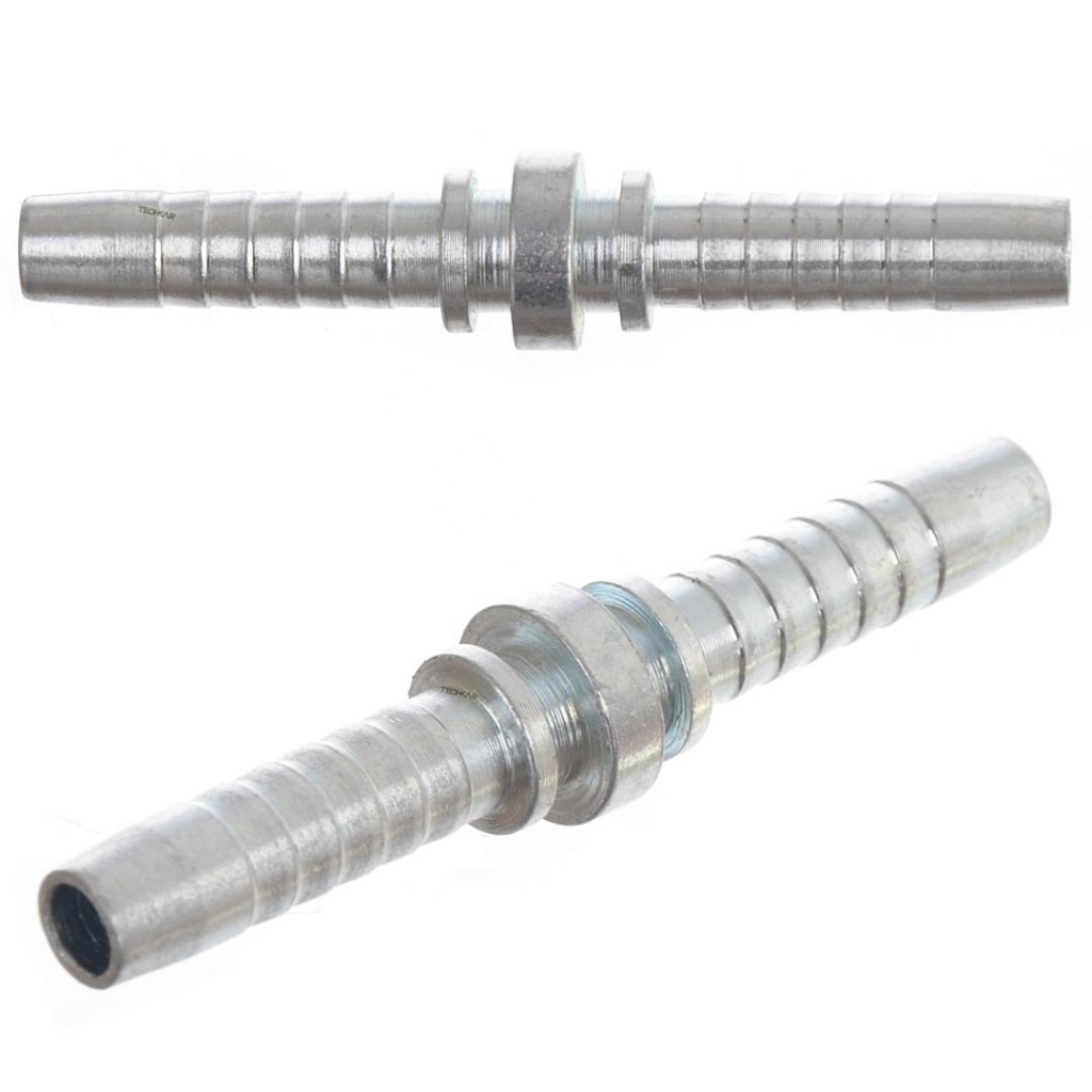 A DN6 tömlőjavító csatlakozó praktikus megoldás DN6 belső átmérőjű magasnyomású tömlők toldására és javítására. Tartós fém kivitele és megbízható tömítése miatt műhely- és ipari felhasználásra is alkalmas, krimpelő hüvely nélkül szállítva.