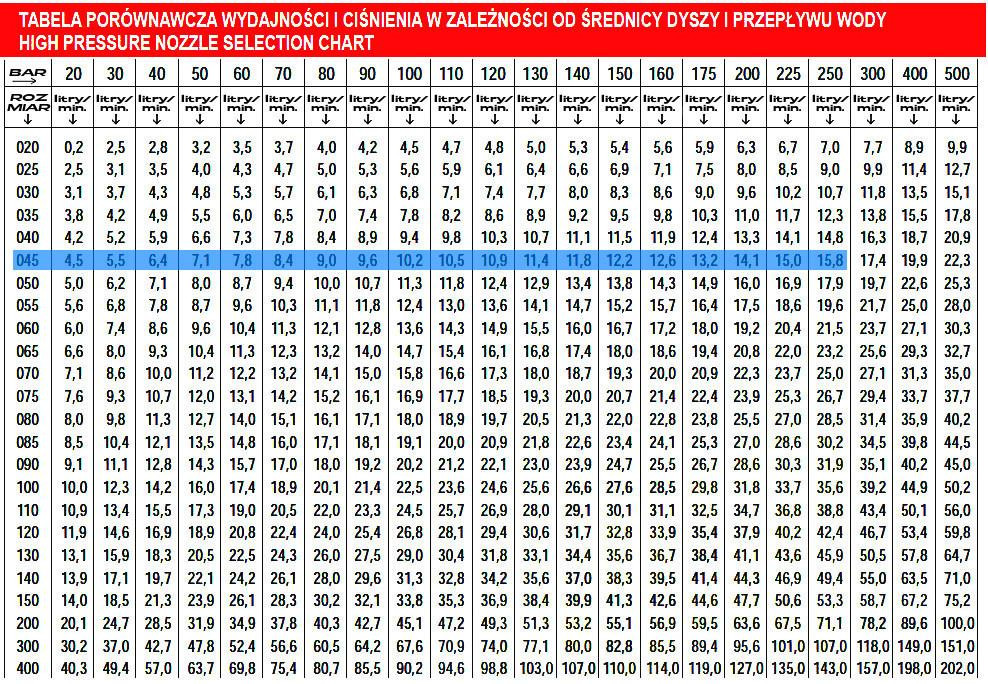 Ebben az ajánlatban 045 MÉRETŰ fúvókákat vásárolhat - lásd a fúvókaméret-kiválasztási táblázatot!