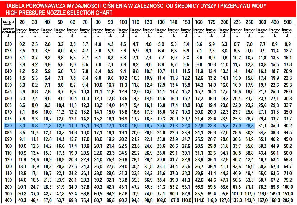 Ebben az ajánlatban 080 MÉRETŰ fúvókákat vásárolhat - lásd a fúvókaméret-kiválasztási táblázatot!