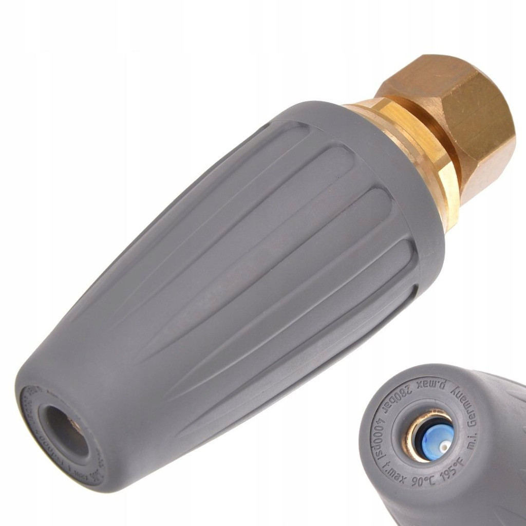 A neves olasz MTM Hydro márka "TURBO NOZZLE" forgó fúvókáját kínáljuk Önnek. A gyártó kiegészítői a legjobb minőségű anyagok használatáról és kivételes tartósságáról ismertek. A PG.280 modell sárgaréz testtel (kívülről gumiborítással) és kerámia betéttel rendelkezik, amely maximalizálja a tartósságot és a tisztítási hatékonyságot. A legújabb, innovatív, 20°-os vízsugár-szórási szöggel rendelkező rotormechanizmust (lásd a fotókat) is alkalmazták, amely lehetővé teszi a max. forró vízzel történő mosást. 90°C. A fúvóka M18 belső menetes csatlakozással rendelkezik, így kompatibilis a legtöbb professzionális HD és HDS sorozatú Karcher készülékkel.