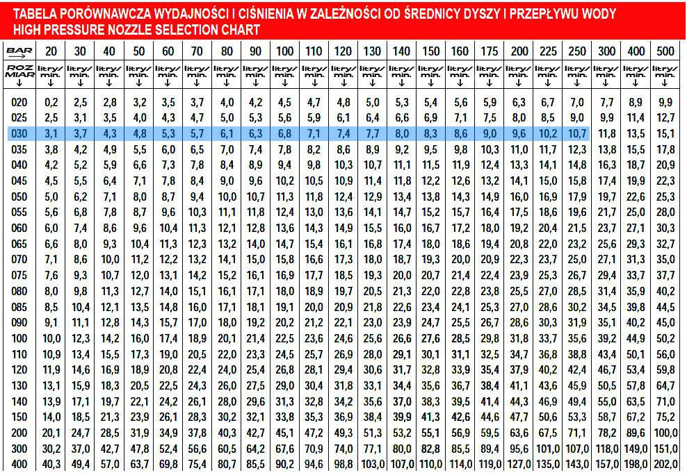 Ebben az ajánlatban 030 MÉRETŰ fúvókákat vásárolhat - lásd a fúvókaméret-kiválasztási táblázatot!