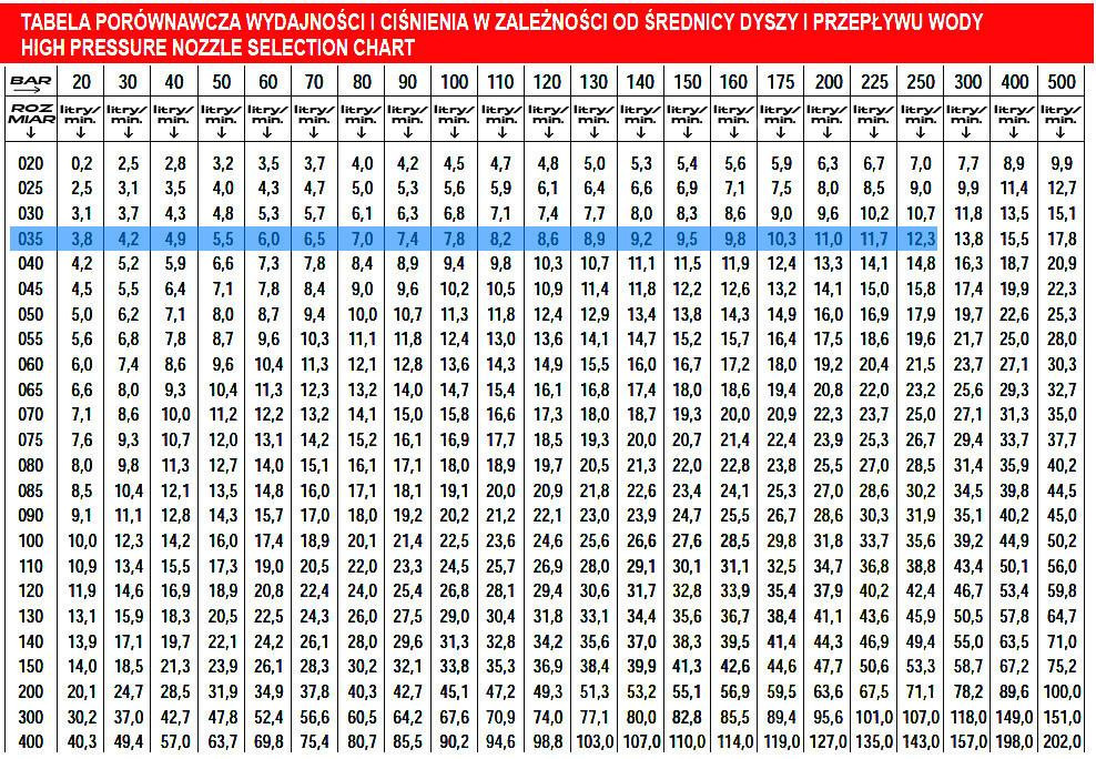 Ebben az ajánlatban 035 MÉRETŰ fúvókákat vásárolhat - lásd a fúvókaméret-kiválasztási táblázatot!